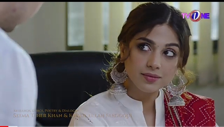 Why doesn’t Babar Ali look up? I mean, in here I can understand that he respects Bibi Jaan too much to look straight at her, but he did the same in Amanat; and I noted it plenty of times. In Amanat, he was probably too proud to look at anyone. Here, he is too respecting to look at anyone. I think Babar doesn’t like to look at the camera 😀