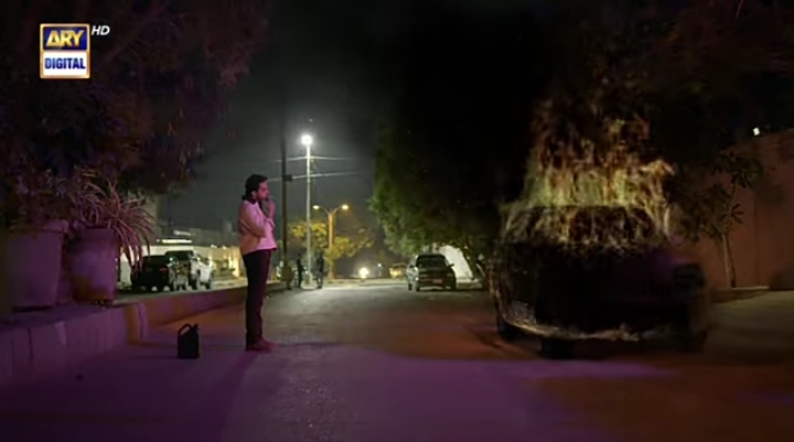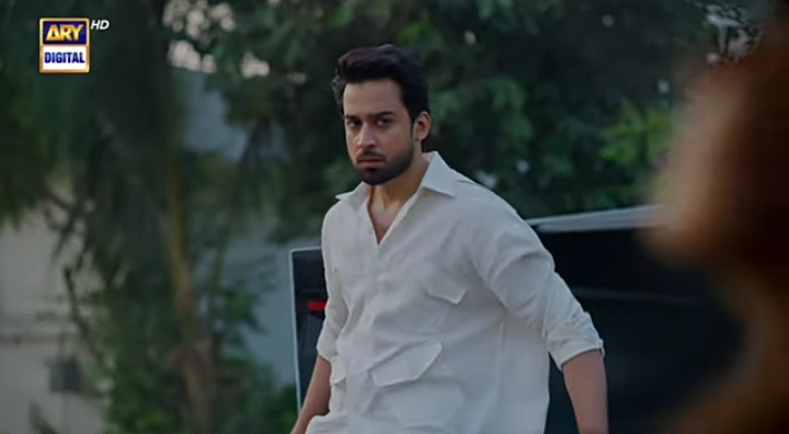 Kamyar gets a call from Sohail, he has to go to a board meeting but Ayra has ruined his limited edition ugly car with nailpaint and puncturea the tyre. It’s her words that hurt him the most, though. To rub salt to the wound, the girl he was eating lunch with, she comes and sits in her car. He smiles, looking hopeful and then she speeds away.