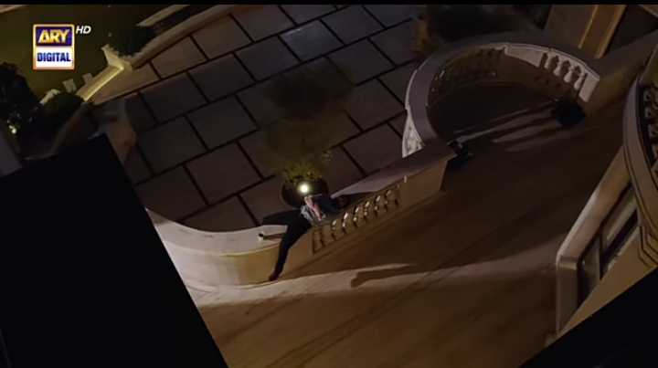Kamyar couldn’t sleep so he goes to talk to her. Ayra notices him accidentally, grabs her dupatta, goes out, scolds him and begs him to go away.